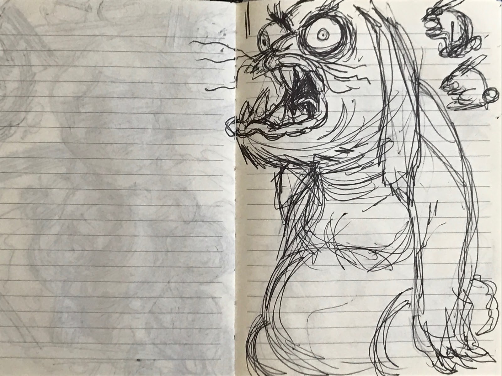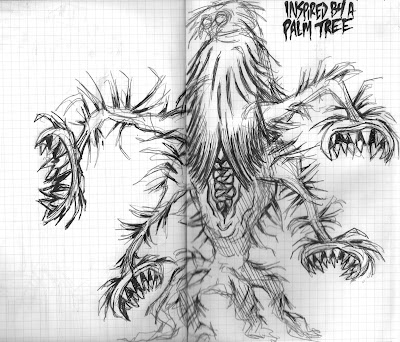 It's Inktober and you know what that means...let the inking of ghoulish creatures begin! I really enjoy seeing all the ink sketches people are producing this month. I'm not sure what this is, but I came home one late windy night and observed a palm tree swaying in our backyard and it hypnotized me into drawing this. Can you name this beast?