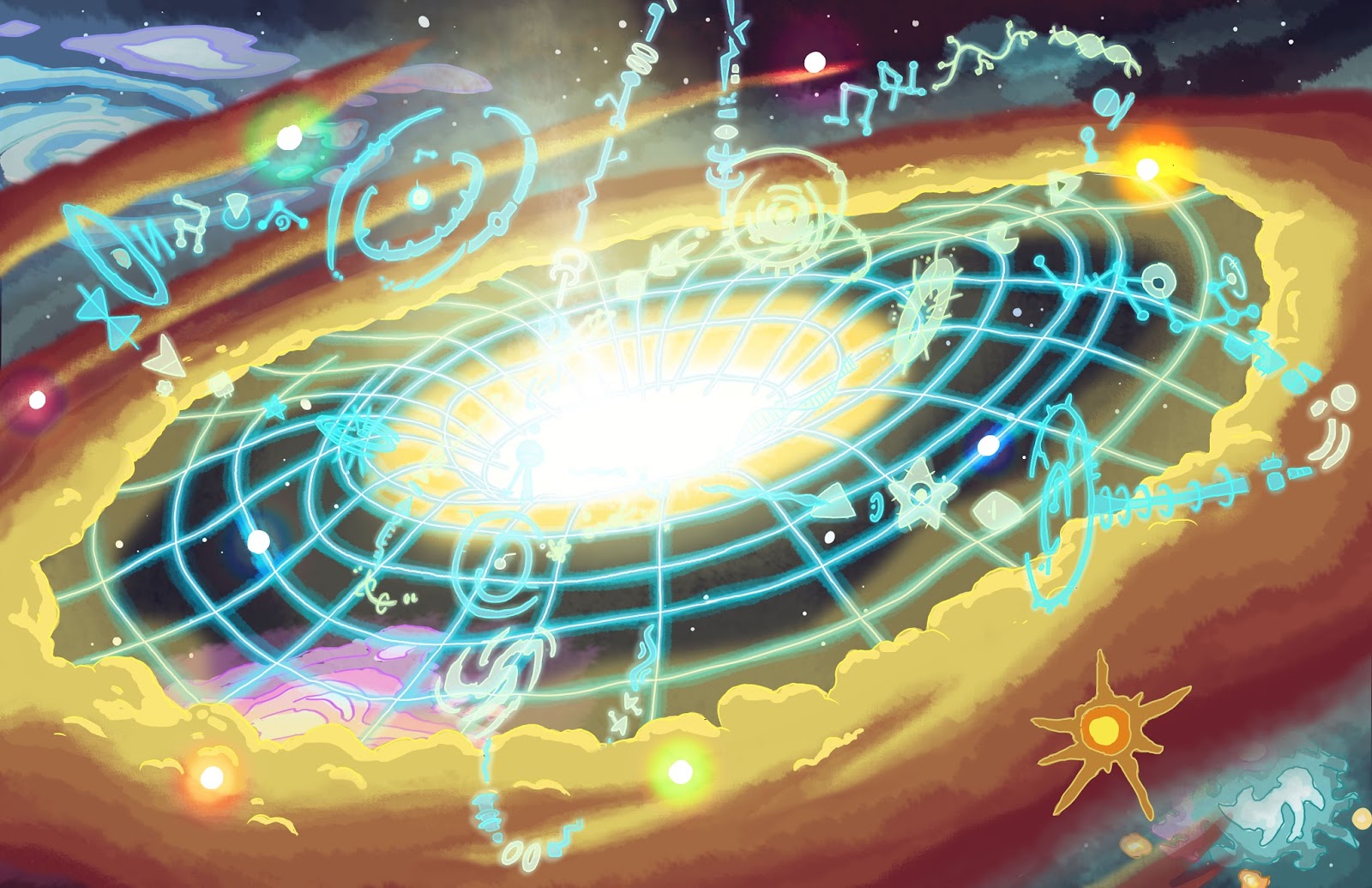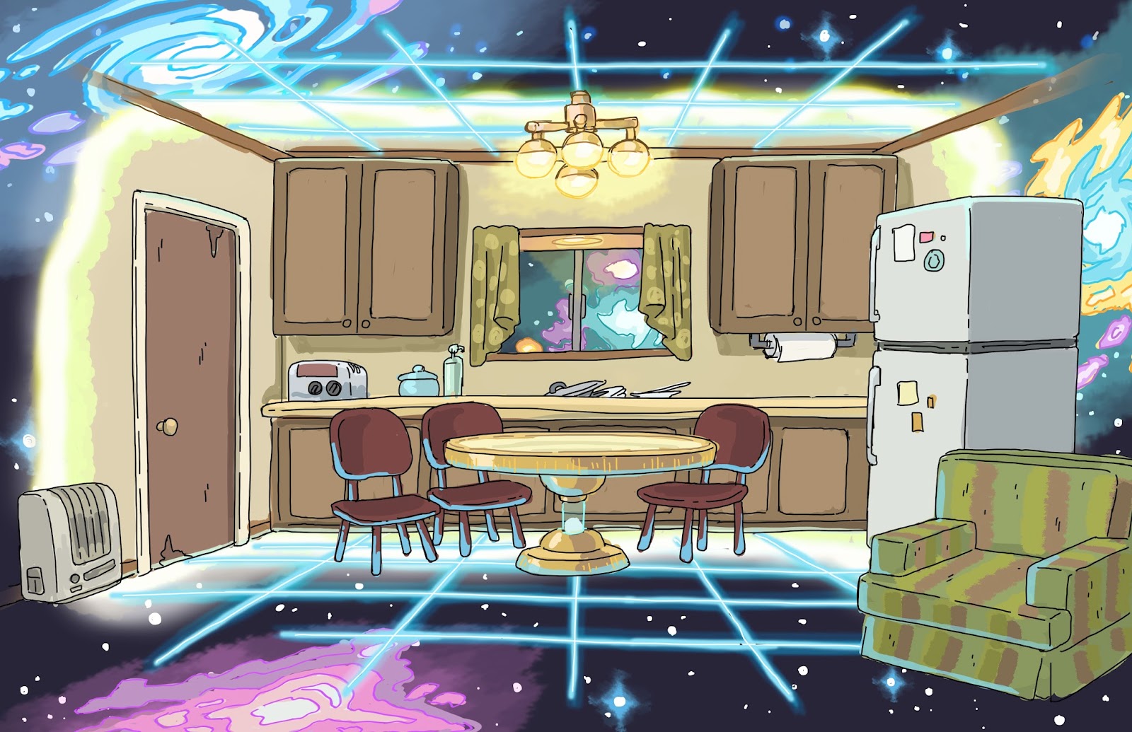 Danny and Future Worm go so far into the future until they reach the 'End of Time', where all information has collapsed into a singularity in seek of wisdom from "You Know It!" the End of Time played by Ron Funches. We first see the second image, where the universe ends at a black hole which at first is meant to mislead the audience into thinking its an mysteriously ominous place to be when they portal through the white light into The End of Time's bachelor pad apartment for some grilled sandies' to lighten the mood. I did a rough mock up of the black hole exterior and Joey McCormick did the clean up of the black hole Bg helping add in some alien occult symbols moving like Saturn's rings around the gridded ground plane, this is still the rough paint I did to get the concept across, not final paint. The first image is of the End of Times' kitchen in space which I liked the idea of still seeing space spin around outside of the kitchen so theres always a grandiose movement of the universe outside. Last is the character 'The End of Time', I had fun exploring what this character could be. Devon Roth worked out the final body shape with a photorealistic space card for his body color. We landed on the top right for the episode with a globe of meridians spinning inside, my personal favorite is still the lazier looking one in sweatpants. I just liked the idea that heres a character with a lot of time to kill at the end of space and time just hanging in a crappy apartment exposed to the elements freely floating in space.