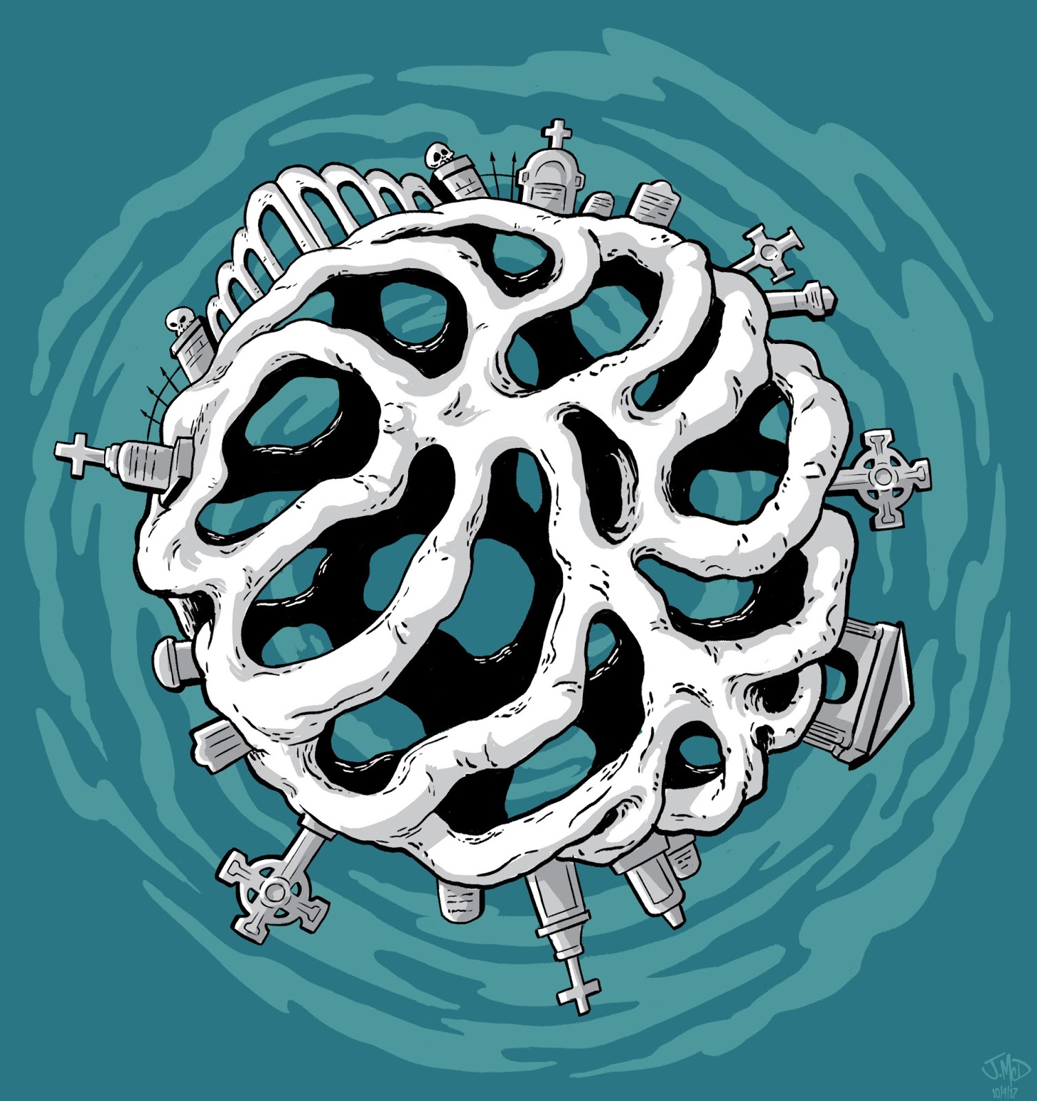 Inktober! Well ok, most of this is digital, but it started on paper with ink so it still counts in my book. First off is Moon Bone? bone moon? cemetery moon? you get the drift, a hollow moon propelled by some mystic energy core was the idea. Next is a spider fairy eating her young. Lastly, beware of Zombie Hog! A new super villain who's pissed by the consumerist holiday of Halloween overshadowing Groundhog day, the original holiday where everybody got dressed up and share treats, is here to reclaim his holiday.